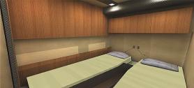 Gli interni possono essere personalizzabili grazie alla modularità degli spazi. Questo permette addirittura di poter usufruire, dietro alla zona letto, di due grandi spazi dove è possibile installare una zona tecnica o le cabine dell’equipaggio.