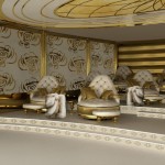 Praticamente siamo agli antipodi di yacht maschili come Eclipse, il mostro acquatico da 1,2 miliardi di euro di Roman Abramovich, secondo solo all’Azzam, lo yacht più grande del mondo. La Belle è di tutt’altra pasta, pensato dalle donne per le donne. Nasce da un’idea di Lidia Bersani Luxury Design che desidera accontentare le donne eleganti e pretenziose, con l’impiego di oro, pellicce, onice, gemme e fiori, che sono la risposta raffinata e poco tecnologica alle sale high tech pensate soprattutto per il pubblico maschile.